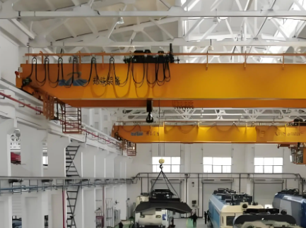 在礦山機械廠生產車間,幾臺橙紅色的天車懸停在半空,鋼纜垂落如靜立的哨兵。隨著檢修指令...